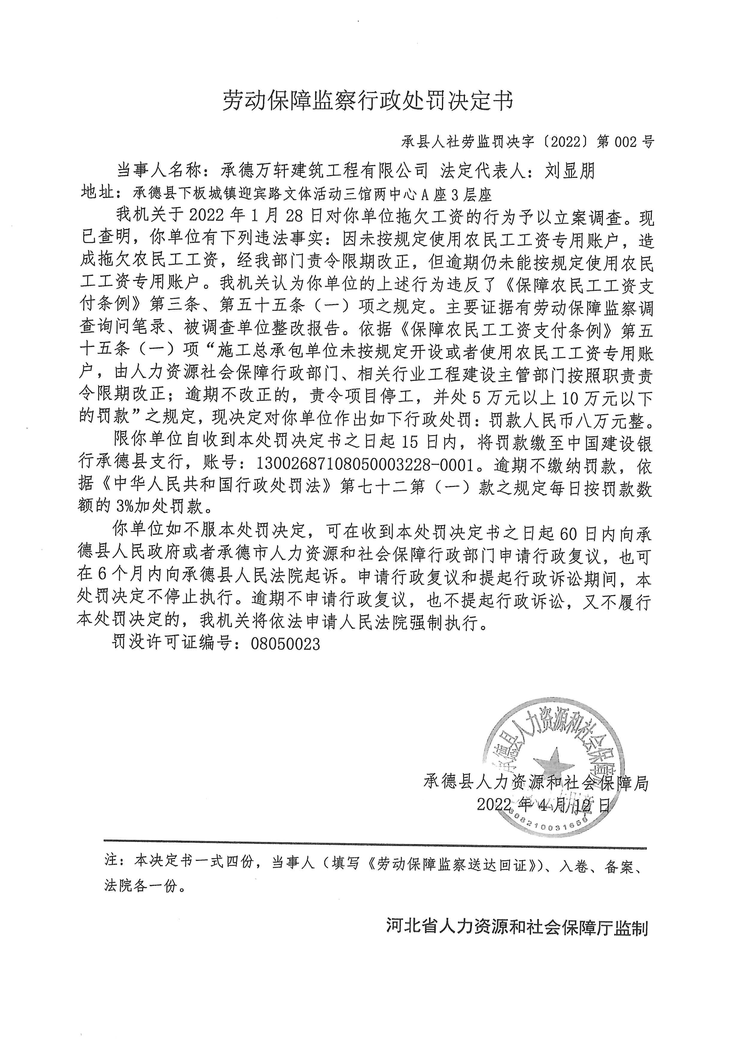 365体育投注一直进不去_beat365手机版官方网站_beat365网站地址人力资源和社会保障局关于对承德万轩建筑工程有限公司的劳动保障监察行政处罚决定书的公示
